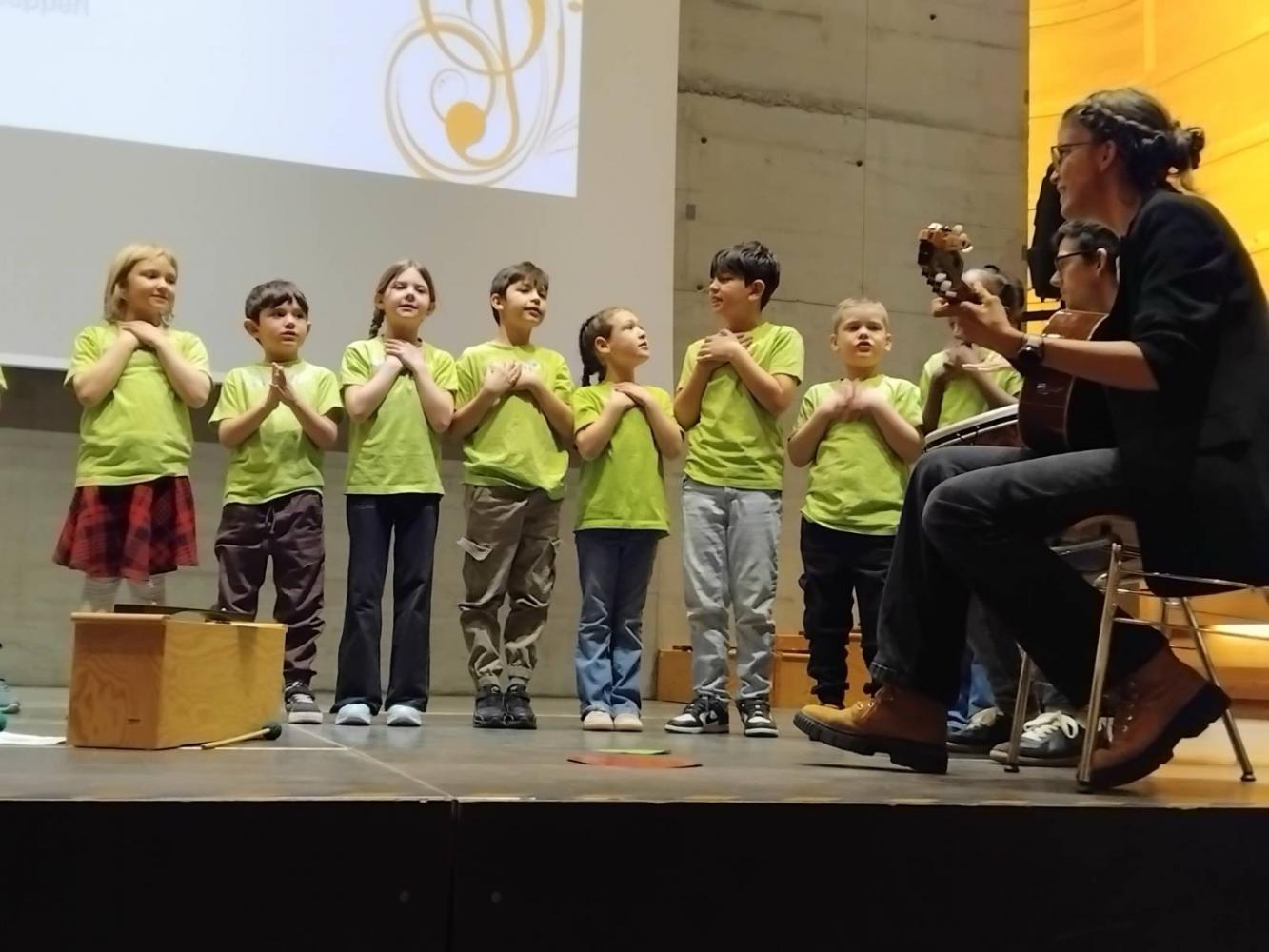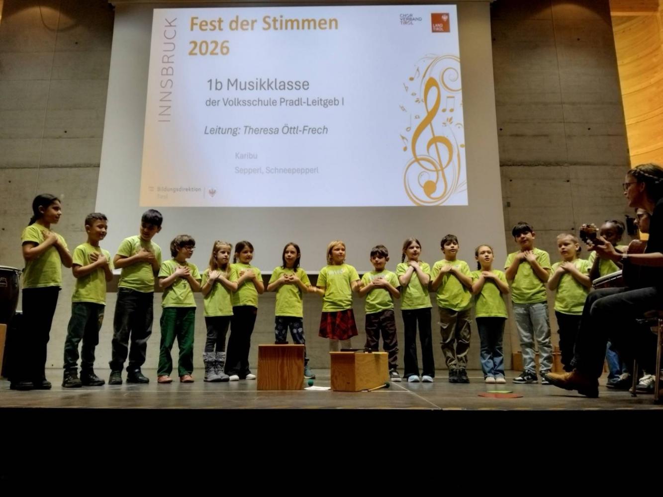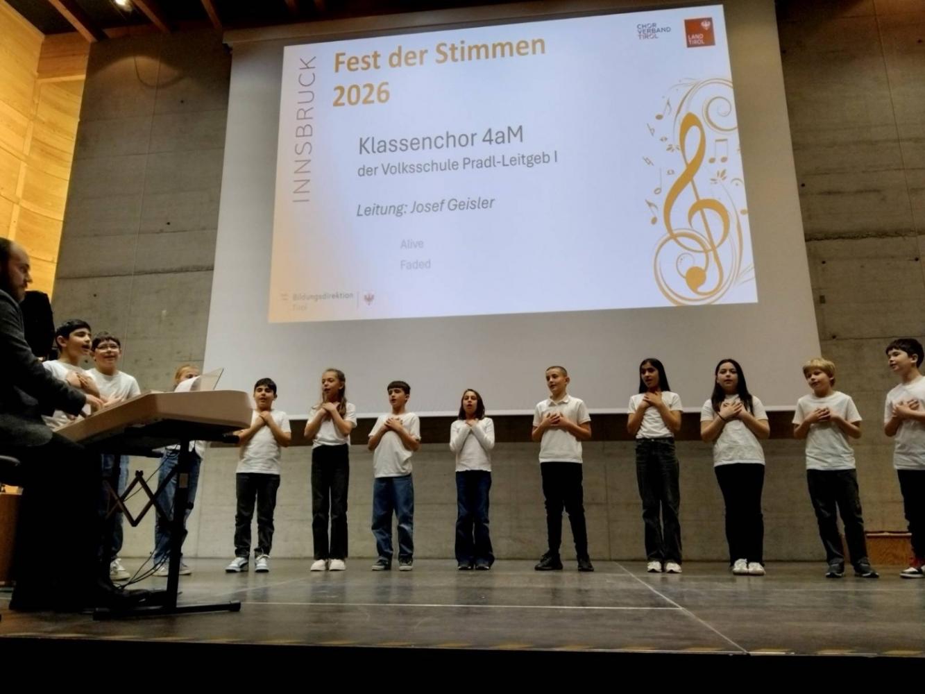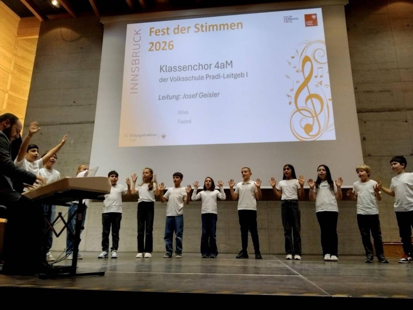 Fest der Stimmen von Janine Oberauer 12. März 2026 4aM 1b Beim Fest der Stimmen fühlten sich die Klassen 1b und 4aM richtig wohl auf der Bühne und hatten großen Spaß bei ihrem Auftritt! Einfach entzückend und grandios!