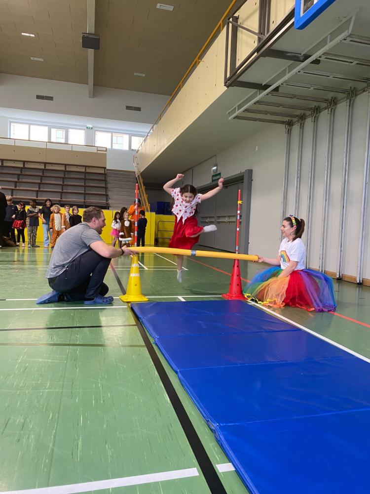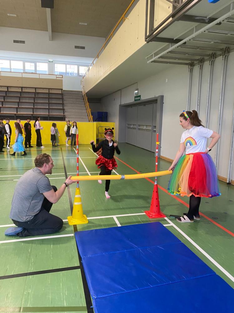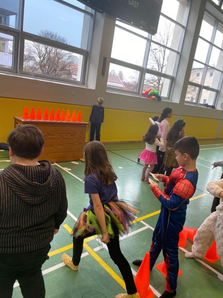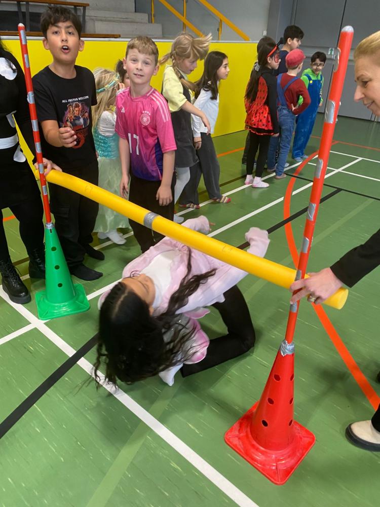 Am Faschingsdienstag wurde auch am Nachmittag in der schulischen Tagesbetreuung fröhlich weitergefeiert. Bei Schwungtuch-Spielen und einer Faschingsolympiade mit Stationen wie Limbo, Hoch- und Weitsprung konnten sich die Kinder so richtig austoben. Ein besonderes Highlight war das Hüttchen-Klau-Spiel gegen drei Lehrpersonen. Die Kinder hatten sichtlich viel Spaß und genossen den närrischen Nachmittag in vollen Zügen. 🎭🥳